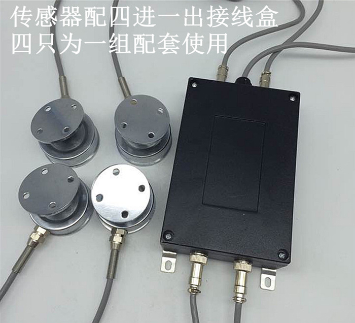 此传感器适用于医疗床的支脚上,四只为一组,可以四只传感器配一只四进一出接线盒,需要的话,也可以配显示仪表,为一套使用。在医疗行业广泛应用。传感器配套四进一出接线盒如图所示: