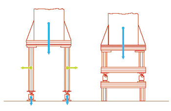 图2中,传感器安装在底部支撑框架的顶端,容器重量从传感器传递到底部框架。这种力的传递产生的偏差最小。虽然传感器也可以不需要框架直接装在地面,但前提是地板必须几乎没有变形或下沉,因为传感器可以测量几千分之一毫米的偏差,而如果地基变形,就不能得到准确的精度。大部分建筑在设计时都允许有地面变形,但对传感器来说是不允许的。