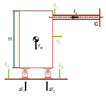 图4说明管子可能产生的力和位移:坚固的管子可能会承担容器的一些重量,并产生位移dP。沿管子方向的力Fp会将容器向侧面推,并产生向下或向上的力。